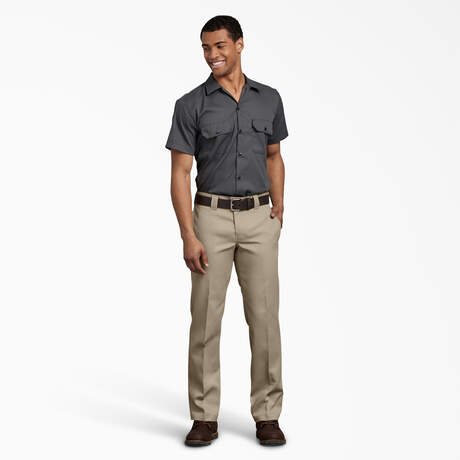 Dickies Men's 873 FLEX Slim Fit Work Pants are made of durable materials that give you the dependability you need, no matter where your workday takes you. These wrinkle-resistant and stain-resistant pants sit below the waist and have a slim fit through the seat and thighs, with a straight leg. Wide belt loops help evenly distribute weight. And the FLEX fabric has a moisture-wicking finish to help you keep cool, dry, and comfortable all day long.