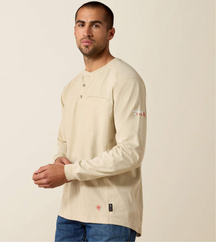 Ariat flame resistant knit shirts are constructed with the ultimate comfort, technology and durability in mind. Our FR Air Henley features lightweight 6 oz jersey fabric and a convenient Velcro closure chest pocket.