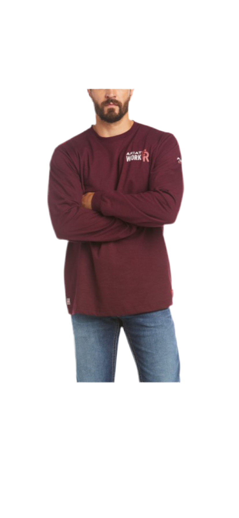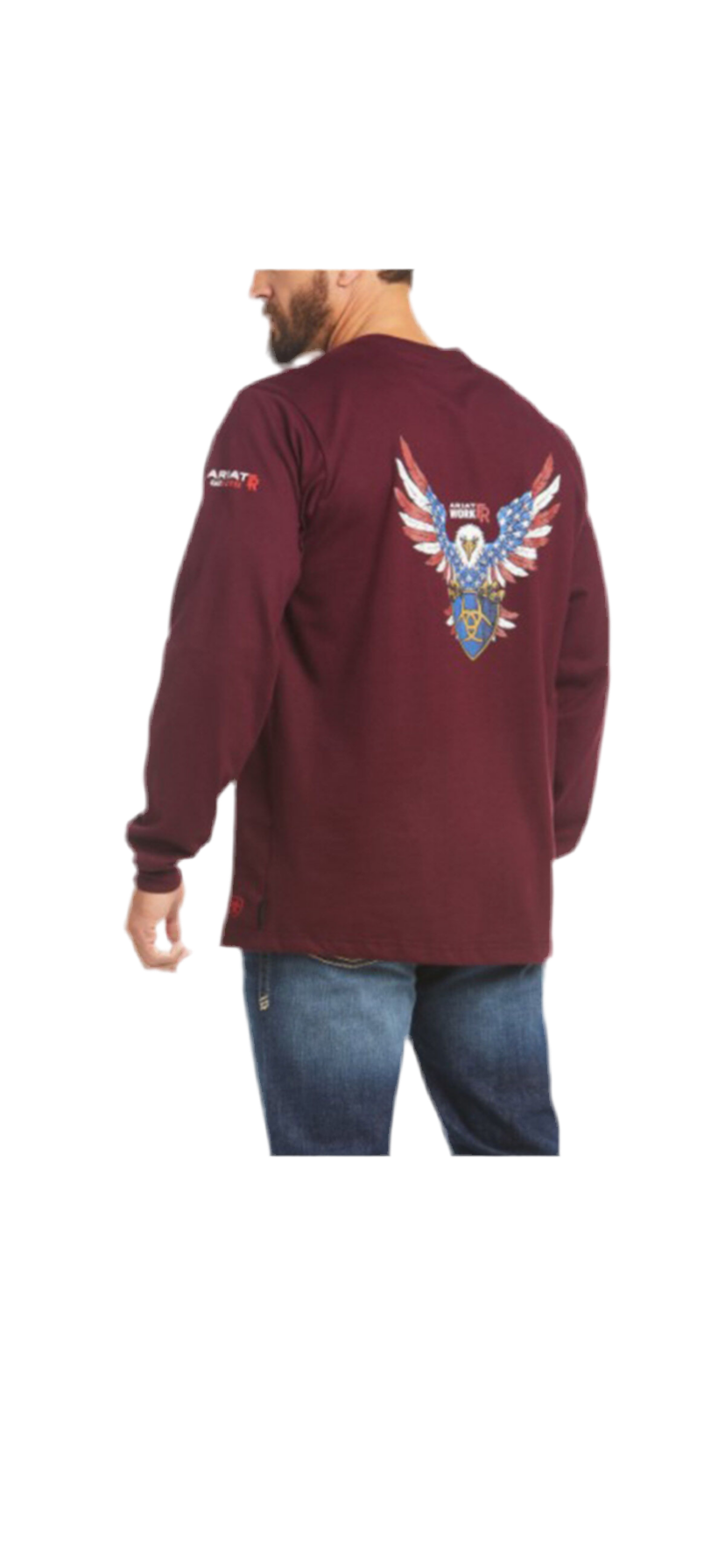 - "Ariat Work FR" with logo & patriotic eagle on front