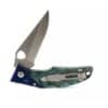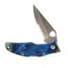 Stainless Steel; 3.5″ Half Serrated And Half Smooth Blade; Burled Wood With Turquoise Resin Inlay Handle; Ariat Shield Thumb Hole; Stainless Steel Pocket Clip; Folding Knife; Color: Blue; Style #A710012597-L