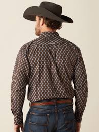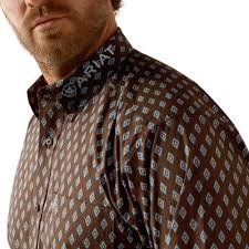 Ariat Team Oak Brown/ Light Blue LS SHRT