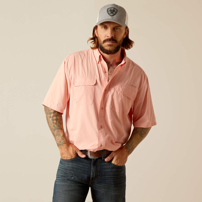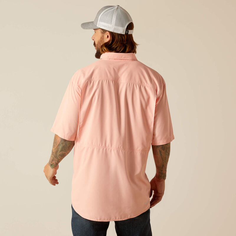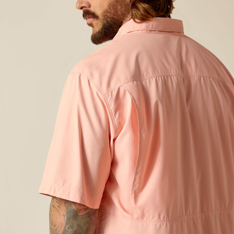 Camiseta ARIAT Venttek Outbound color albaricoque rosado de manga corta.