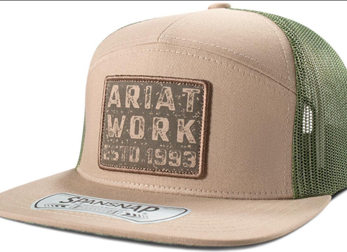 Ariat Mens Cap Snap Back 7 Panel Patch Tan