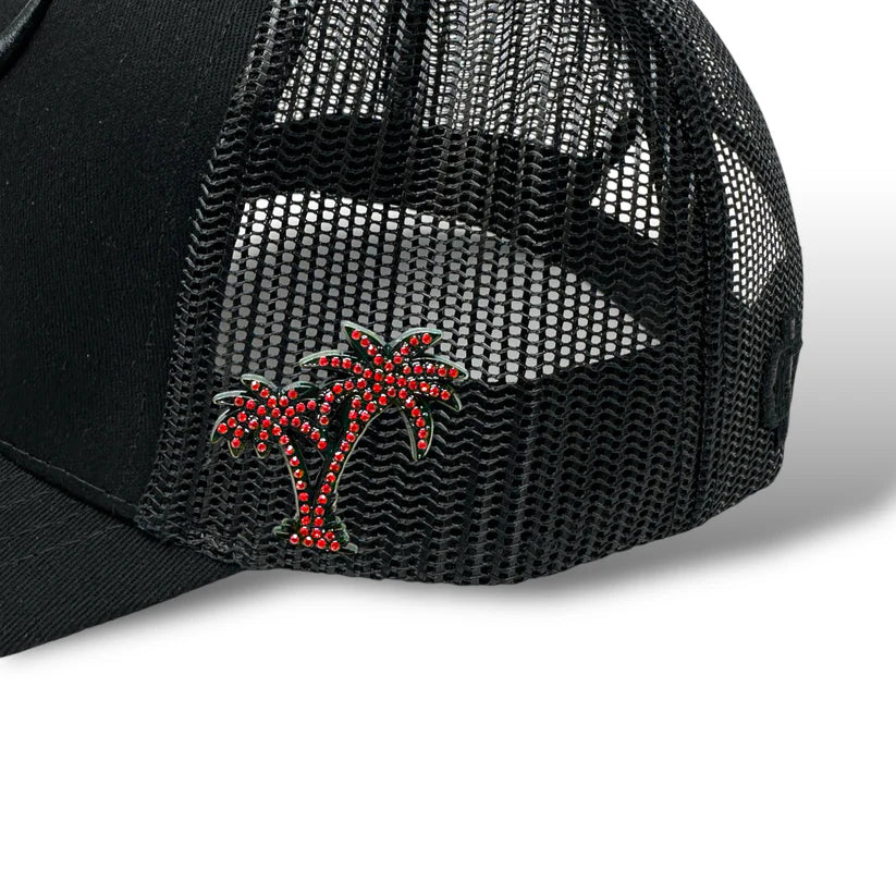 Iced Out Palm Tree Hat Pin - Red & Black