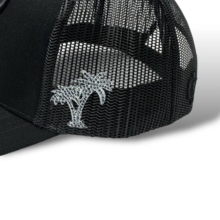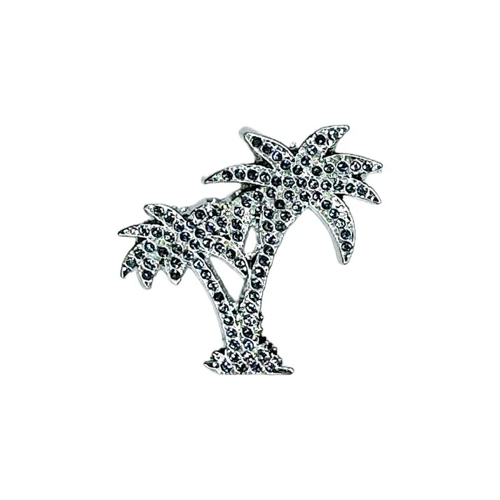 Iced Out Palm Tree Hat Pin - Silver/Blue