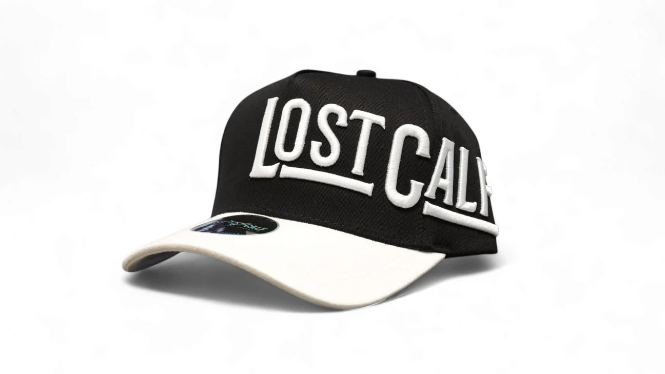 Baseball cap with Lost Calf logo embroidered on front, Lost Calf stitched on left side. Snap back - one size fits all.
