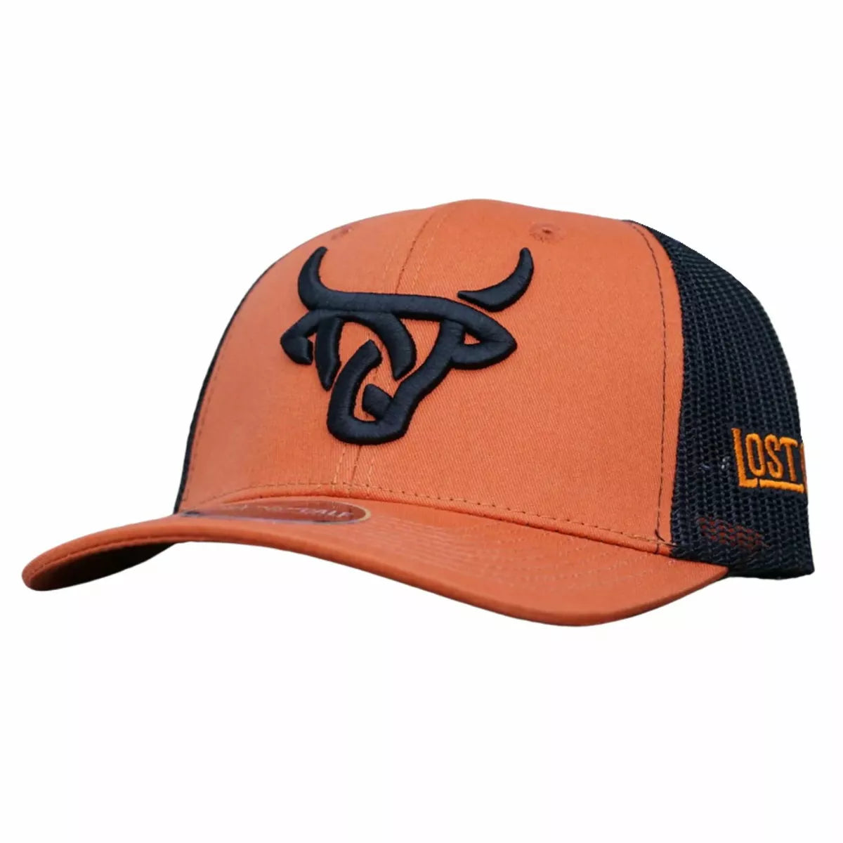 Baseball cap with Lost Calf logo embroidered on front, Lost Calf stitched on left side. Snap back - one size fits all.