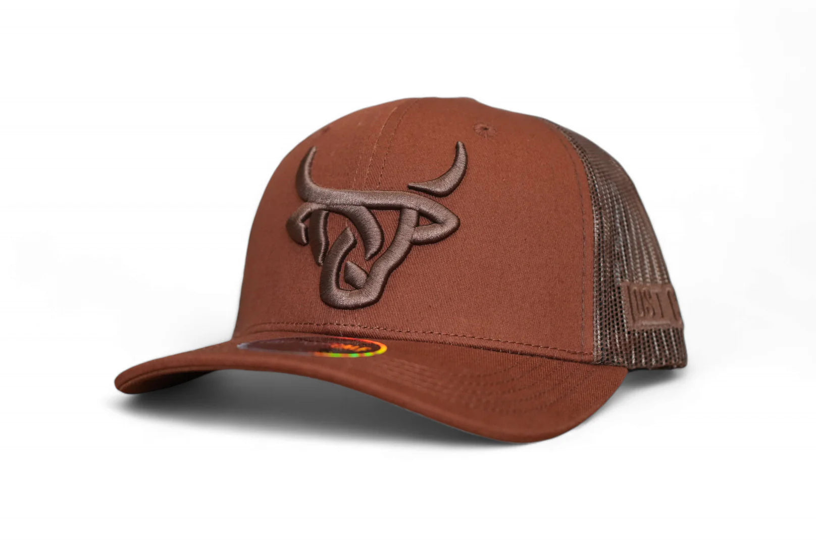 Two tone baseball cap with Lost Calf logo embroidered on front, Lost Calf stitched on left side. Snap back - one size fits all.