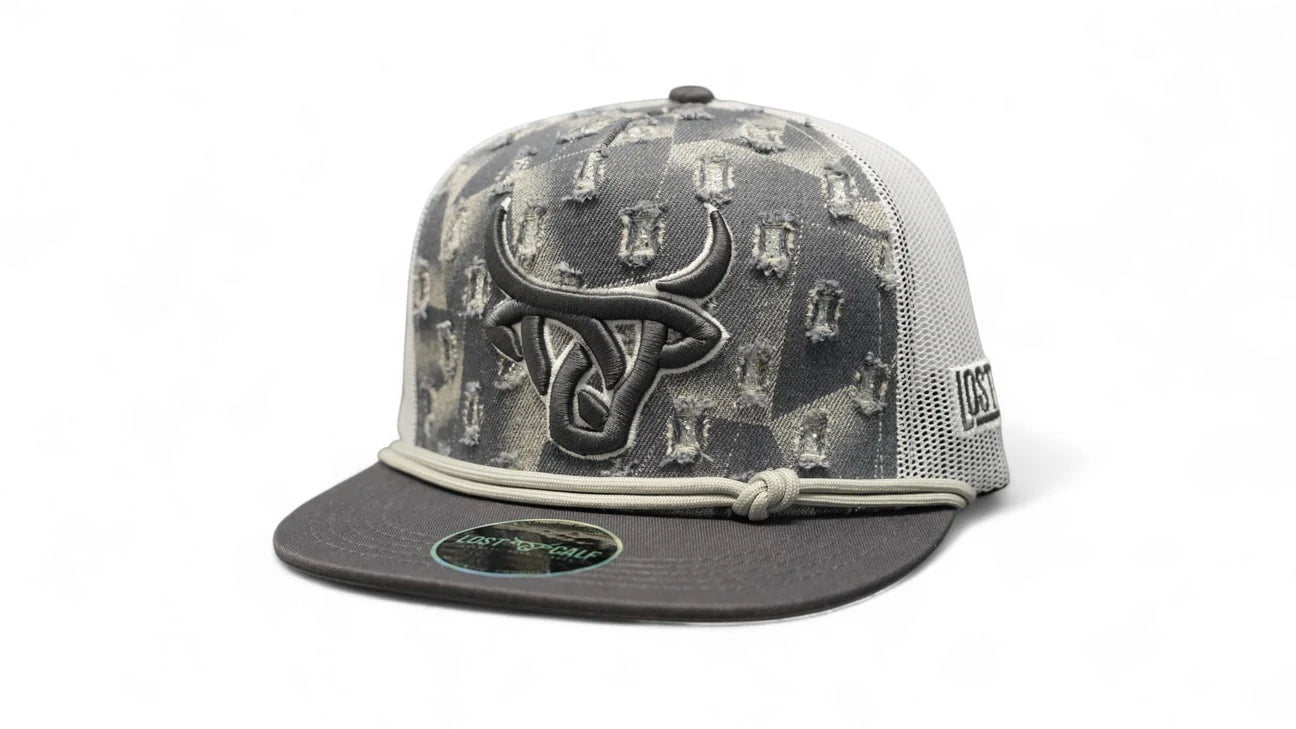 Baseball cap with Lost Calf logo embroidered on front in Black , Lost Calf stitched on left side. Snap back - one size fits all.