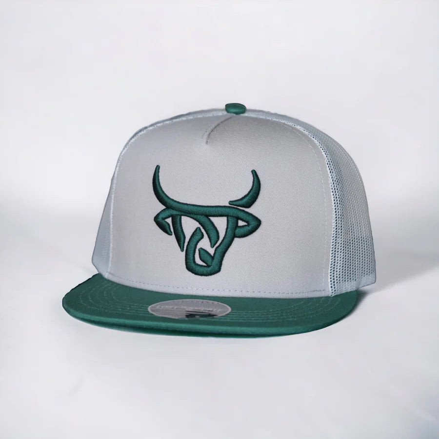 Baseball cap with Lost Calf Bull logo in front, Lost Calf logo stitched on left side. Snap back - one size fits all.