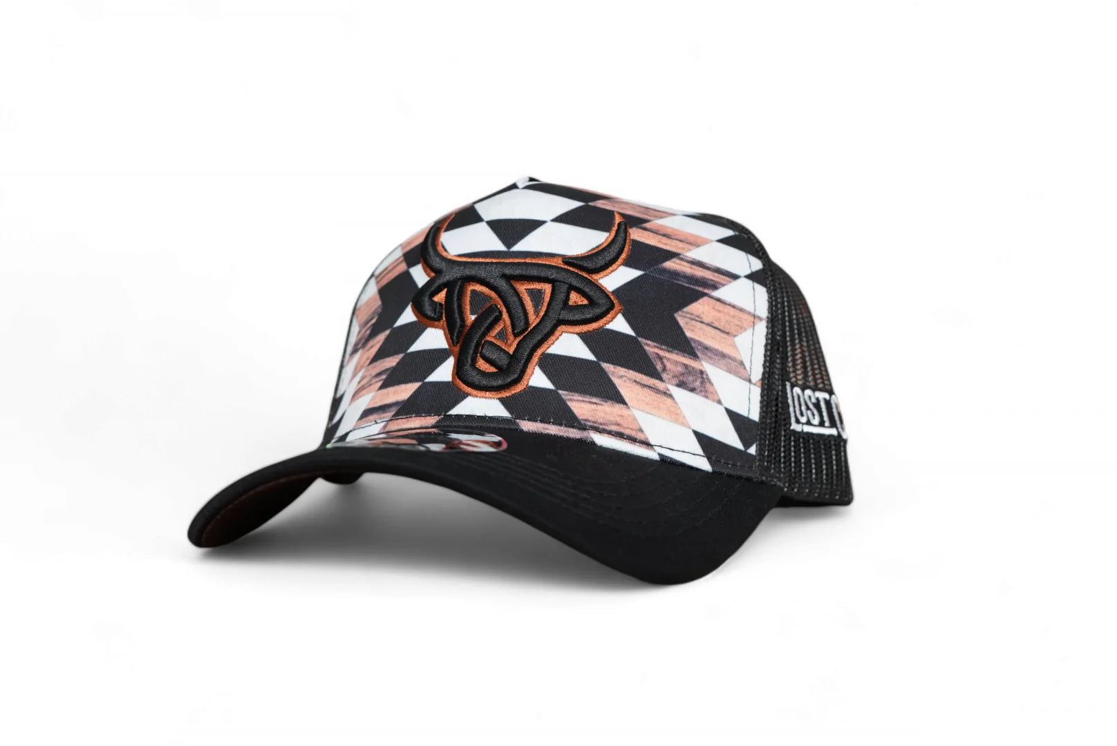 Baseball cap with Lost Calf logo embroidered on front, Lost Calf stitched on left side. Snap back - one size fits all.