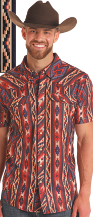 Panhandle Aztec Print Tek SS Snap - Rust