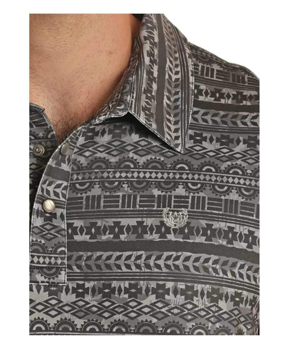 PANHANDLE SS CAMO AZTEC SNAP KNIT POLO - CHARCOAL
