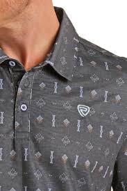 ROCK&ROLL SS LARGE GEO PRINTED POLO - NAVY
