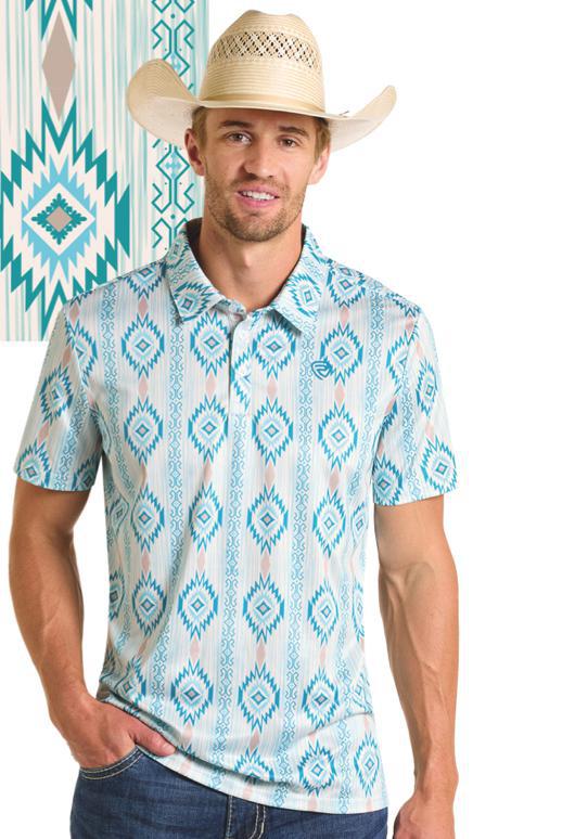 ROCK&ROLL AZTEC PRINTED POLO - CARIBBEAN