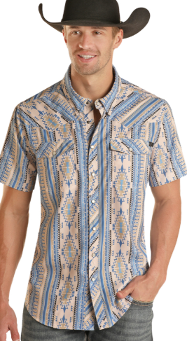 Rock&Roll Aztec Ripstop SS Snap - Blue