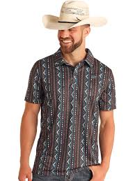 ROCK&ROLL AZTEC PRINT POLO - DARK BROWN