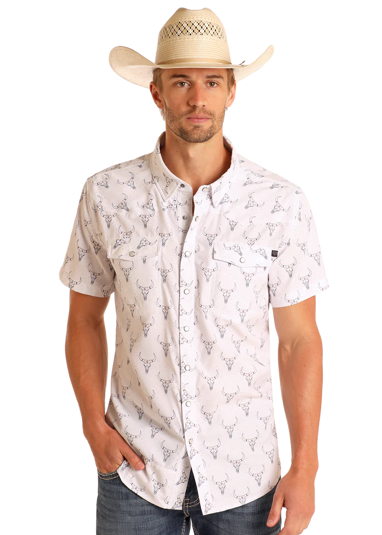 Rock&Roll Longhorn Print SS Snap - Natural