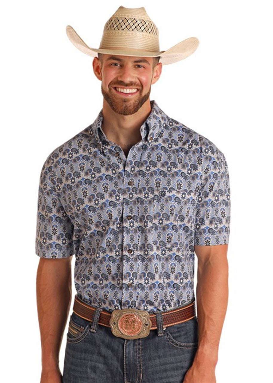 ROCK&ROLL PAISLEY PRINT SS BUTTON - BLUE