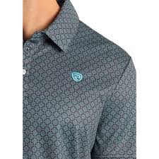 ROCK&ROLL GEO PRINTED POLO - TEAL