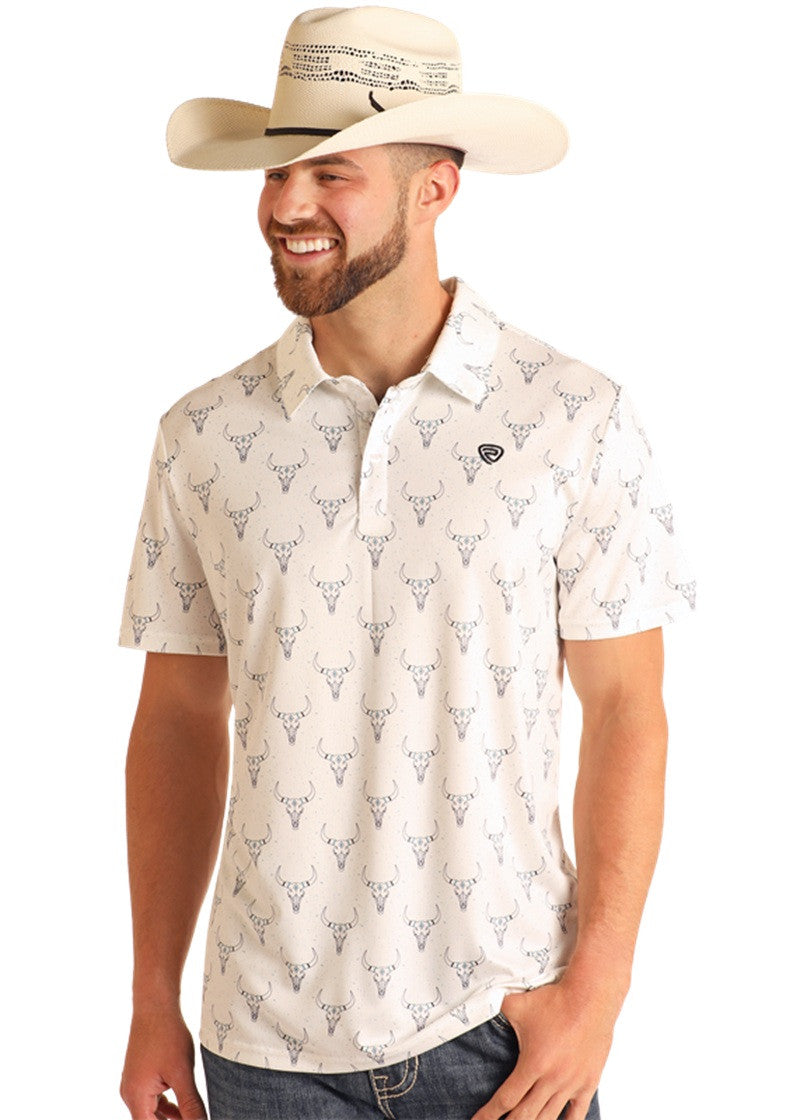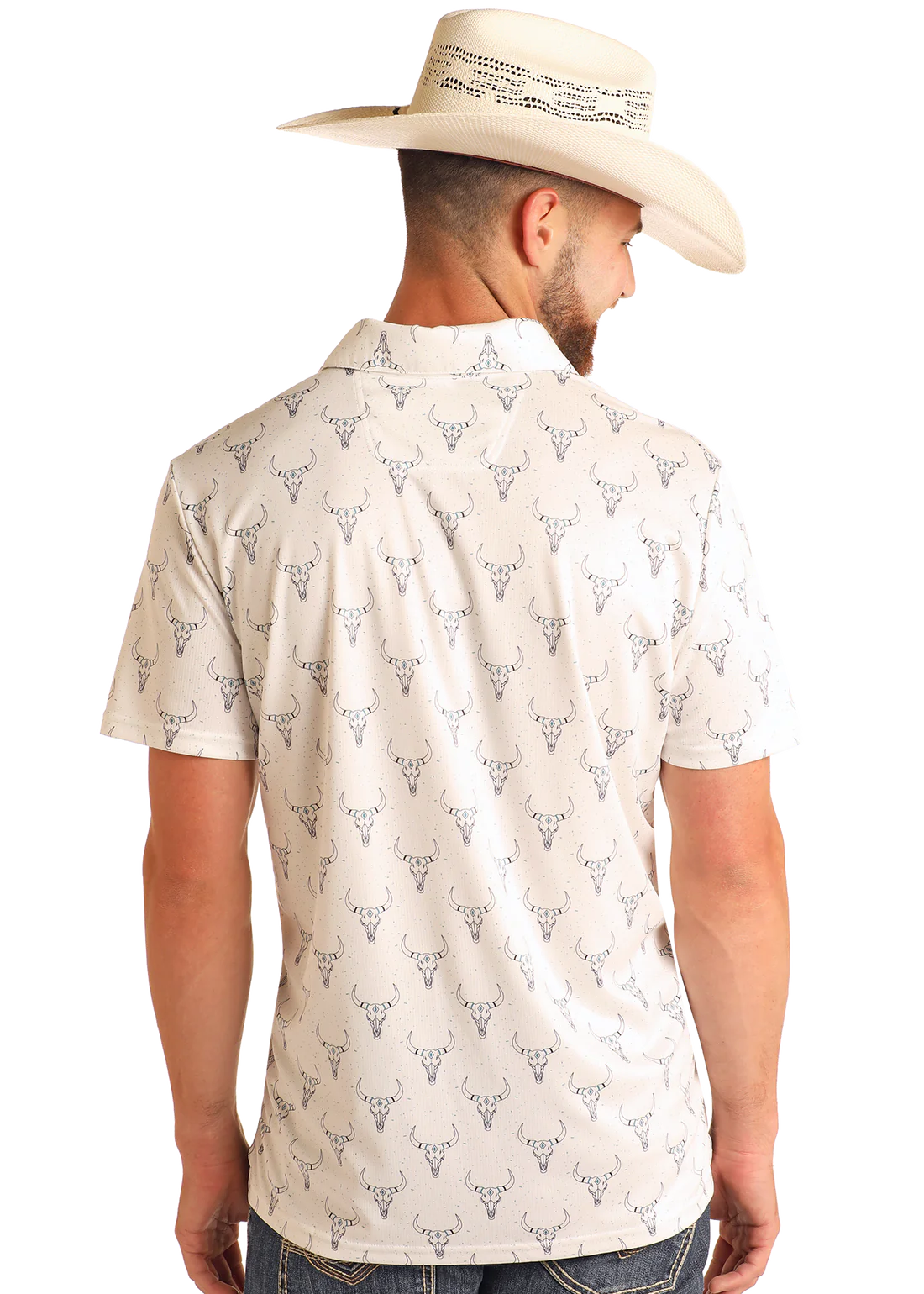ROCK&ROLL RR LONGHORN PRINTED POLO - WHITE