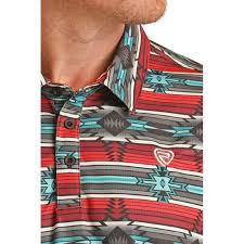 ROCK&ROLL SS AZTEC STRIPE POLO - RED