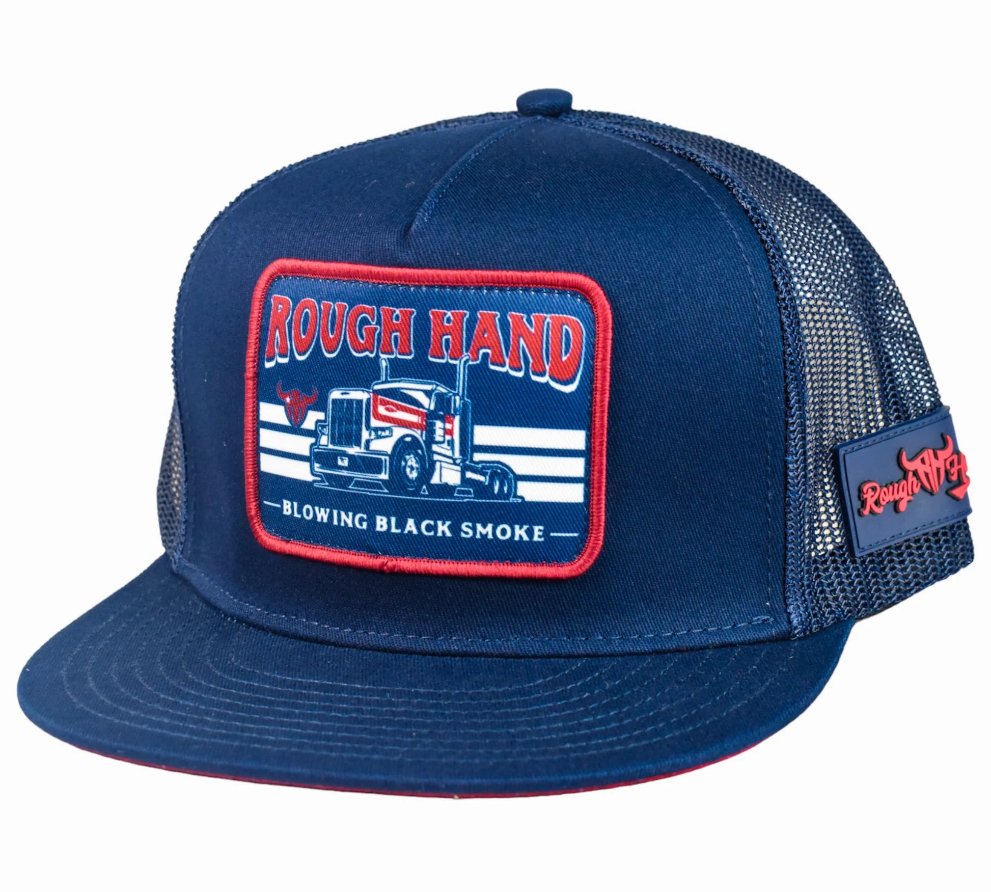 ROUGH HAND Flat Trucker Cap- “BLACK SMOKE” NAVY