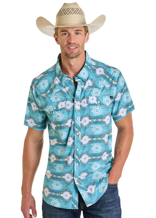 CAMISA VAQUERA TEK CON ESTAMPADO AZTECA ROCK&ROLL Y CIERRE A PRESIÓN - TURQUESA