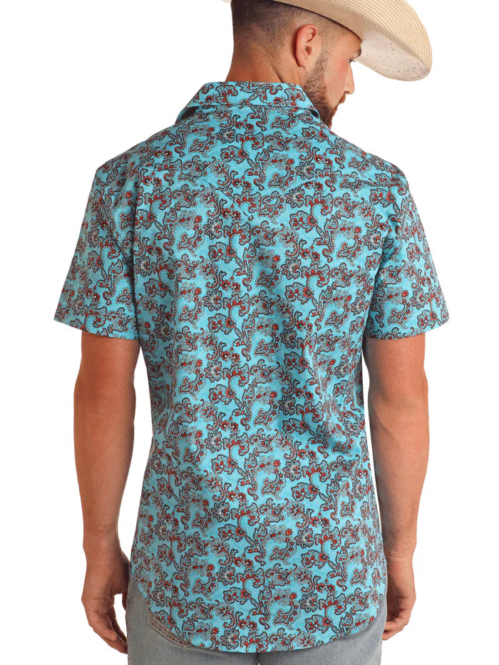 Rock&Roll Classic Fit Paisley Print SS Button - Bright Turquoise