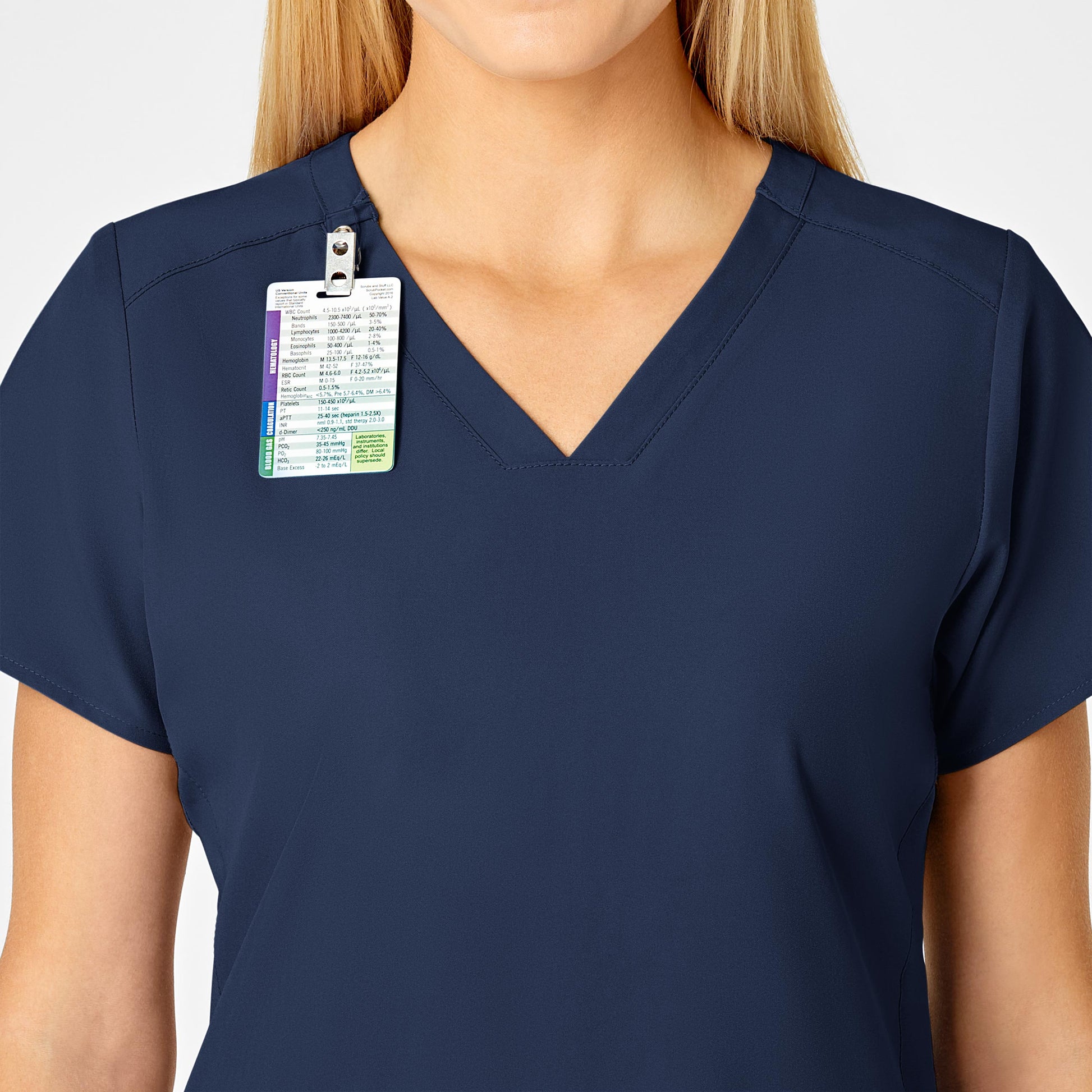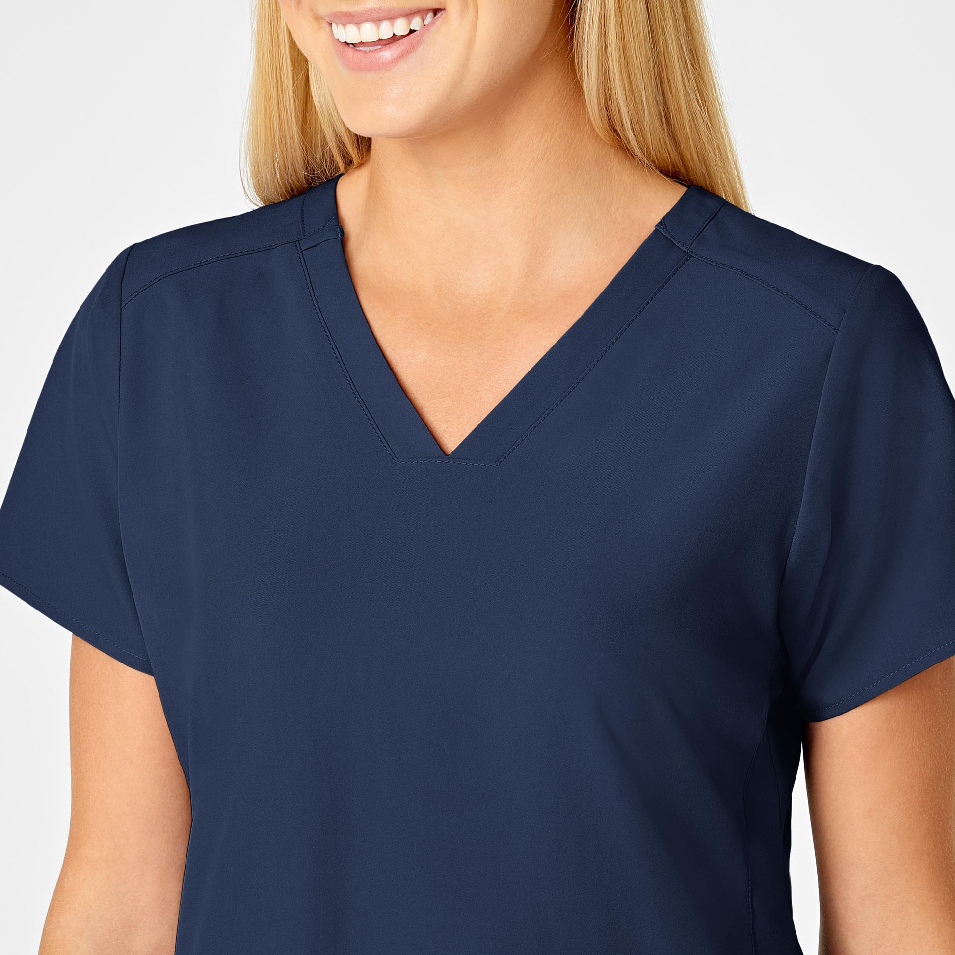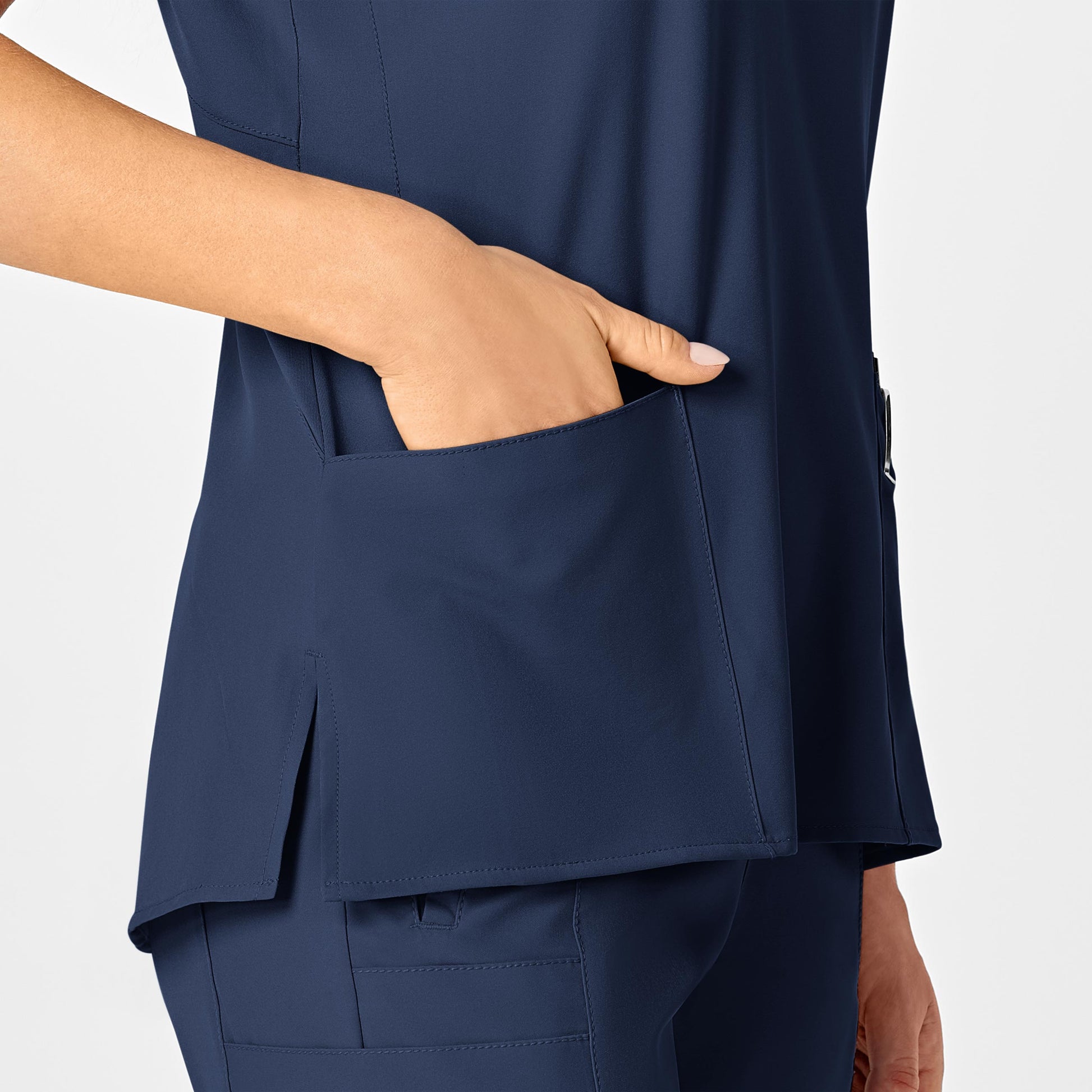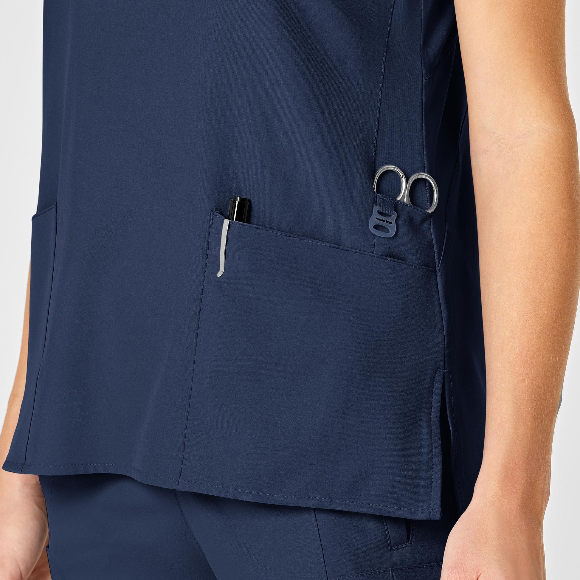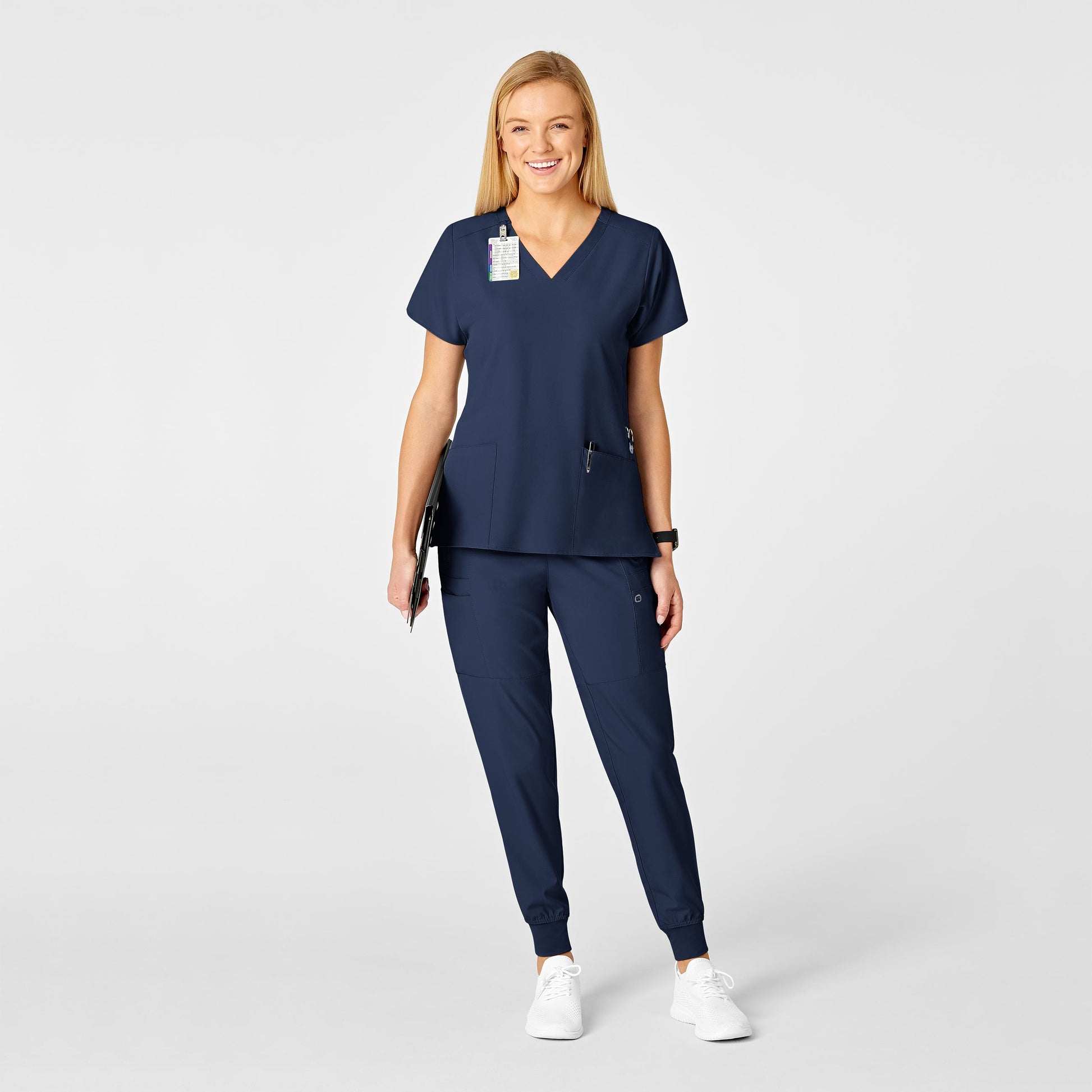 Leading edge microfiber technology that incorporates functional utility. V-Neck design with shape enhancing curved princess seams. Spacious front pockets with utility tape, cell phone to hold your personal effects and work instruments.
