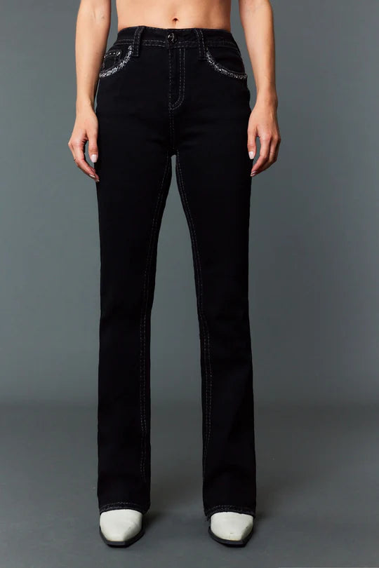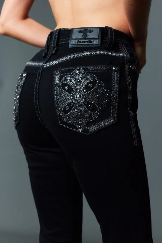 Step into the dark allure of Answer Me's high street fashion. Our Gothic and Punk-inspired jeans feature bold embroidery, rhinestones, and striking hardware for the defiant and unique.