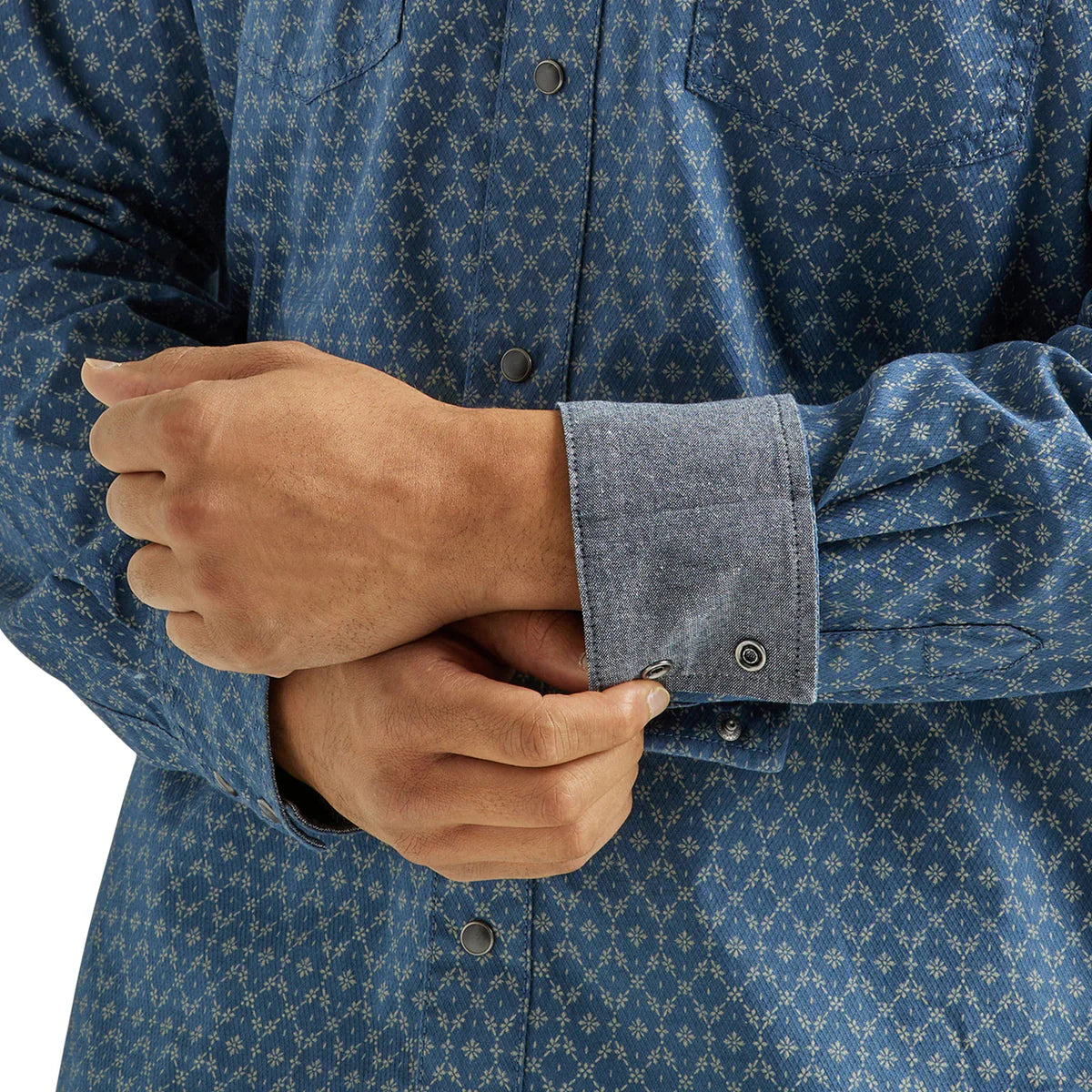 Wrangler Men's Retro Premium Blue Flower Chain Long Sleeve Western Snap Shirt