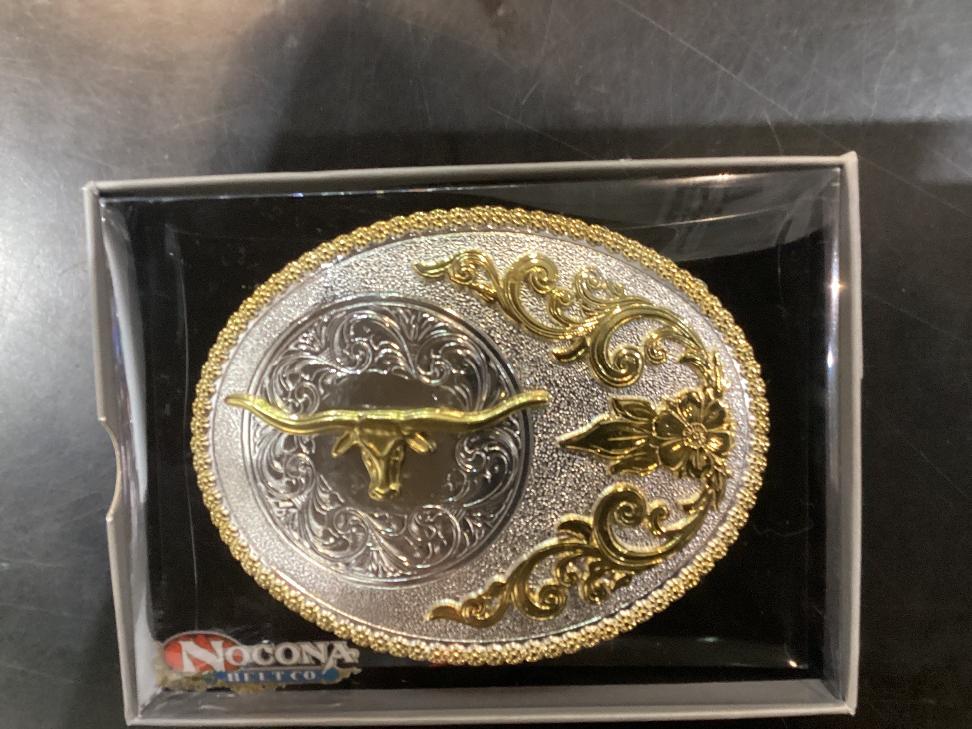 Nocoma Men's Oval Floral Embossed Longhorn Buckle